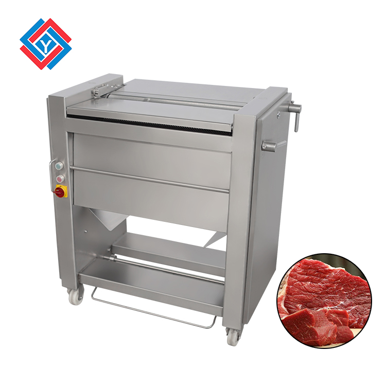 本公司生產的去筋膜機采用了光滑的不銹鋼材質,符合食品的標準;設計符合目前普遍的薄膜剝皮的需要,在肉塊上可以一氣呵成的進行,可以的除去了各個部位上的筋膜,減少停機的時間;操作舒適,配備的腳踏開關可以結合人體工程學的原理進行設計,讓操作的過程更加的舒適;拆卸組裝更加容易清潔保養。