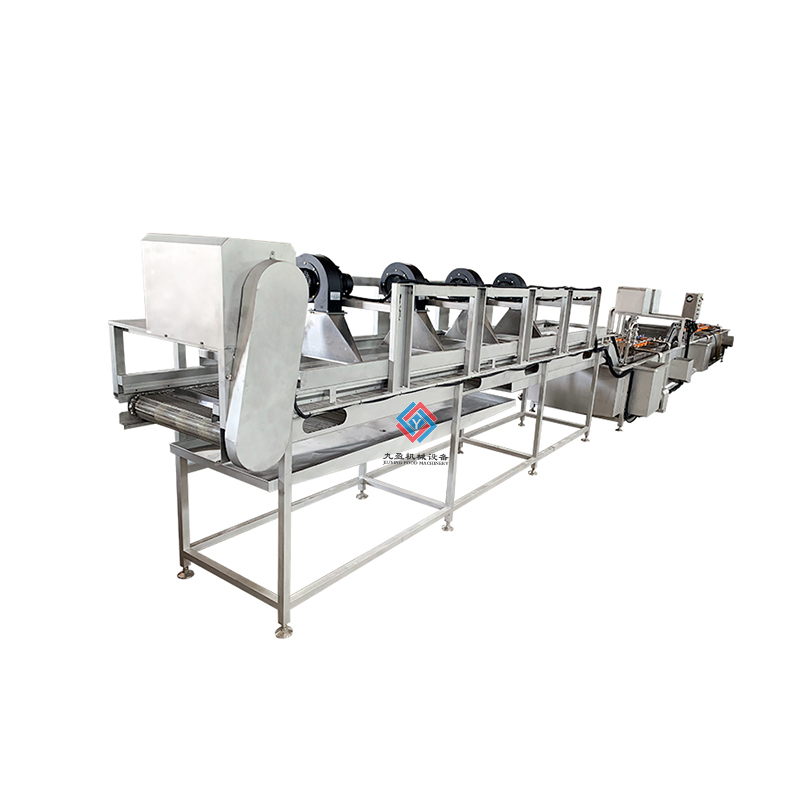 蔬菜清洗加工生產線/流水線是將蔬菜原料經過分級、清洗、切割、包裝等一系列處理之后蔬菜可以直接進行烹飪的新鮮蔬菜產品,它和速凍的蔬菜相比,雖然保存的食品較短,但是能夠保持蔬菜本身的新鮮和營養價值,無需冷凍和解凍,具有食用方便、生產成本低的優點,隨著生活節奏的加快,鮮切的蔬菜具有方便、營養等特點,深受人們的喜愛。