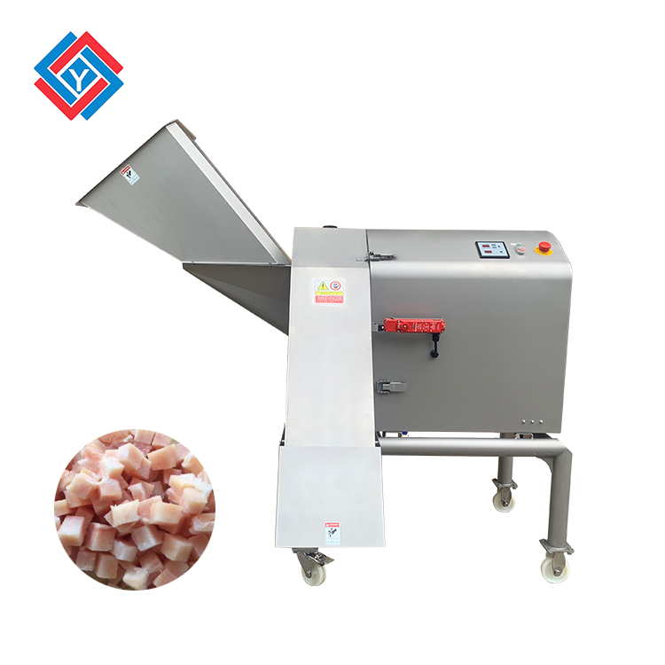 凍肉切丁機的設計結構緊湊,不會占用太多的空間進行工作擺放,并且切割的厚度可以根據用戶的需求進行調整,從而滿足不同的需求,并且在單刃進行切割時,肉料的推桿會做步進運動,能夠保證切割尺寸的正確,在設備的出料口設有微動開關,如果出料門沒有關好則設備無法啟動,能夠保證操作人員的。